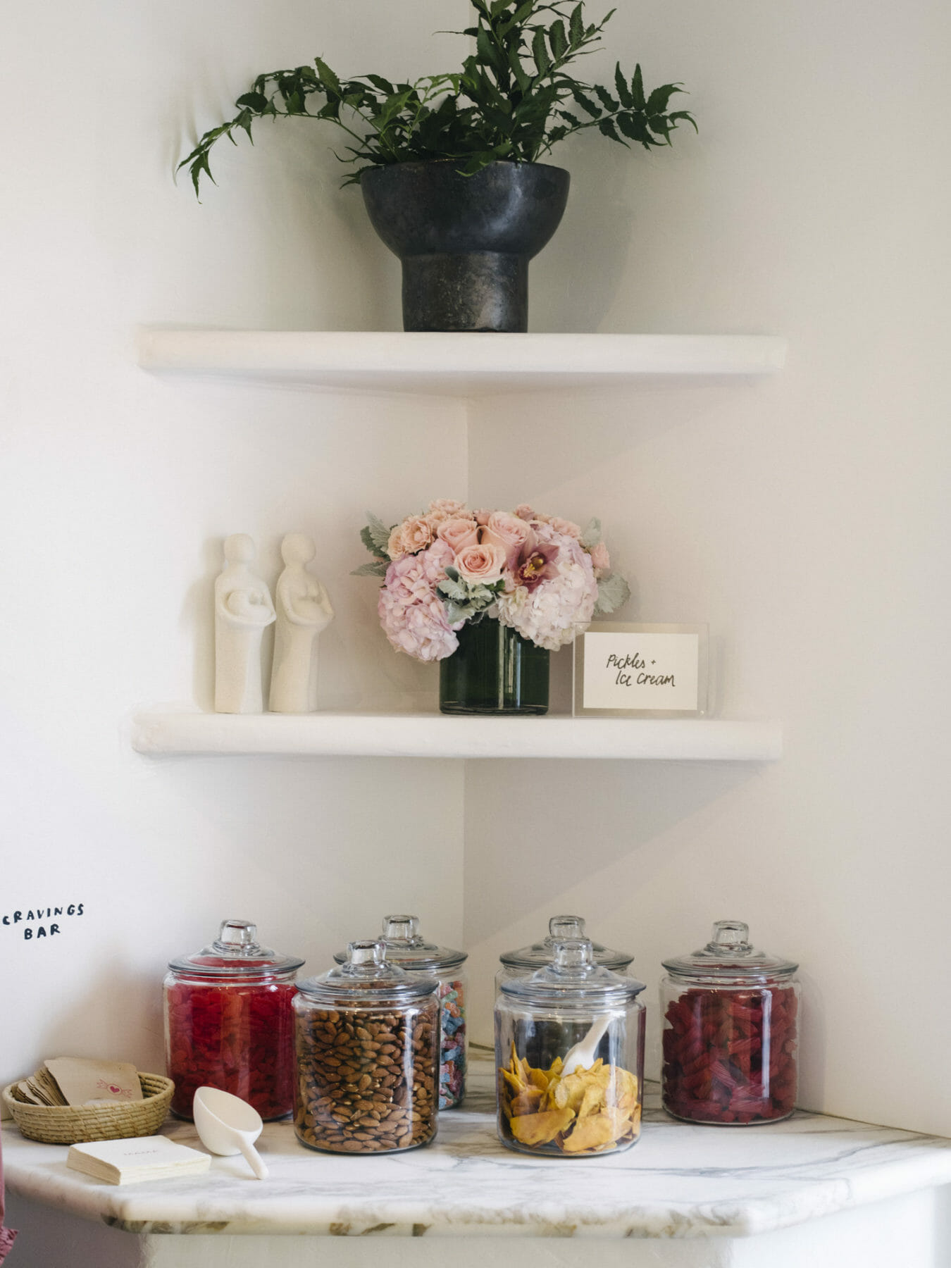 Also in the house is a dedicated apothecary featuring HATCH's newest line of non-toxic, plant-based beauty essentials, like stretch mark-reducing belly sheet masks and oils and calming ankle and foot cream. Clearly with mamas' appetites in mind, there's even a cravings bar stocked with pickles and ice cream (don't knock it 'till you've tried it), almonds, dried fruits, and more sweet and savory snacks.
