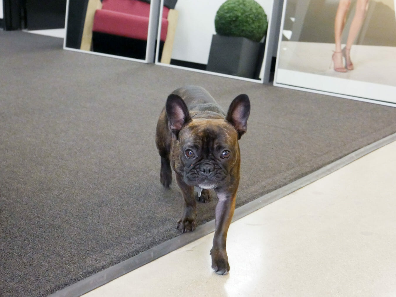We're very dog-friendly here. Today's light on dogs; we usually have a good three to four running around. We're big [supporters of] rescue. We always say rescue a dog, adopt, don't buy a dog [from a breeder.] All the dogs are rescues in the office as well.