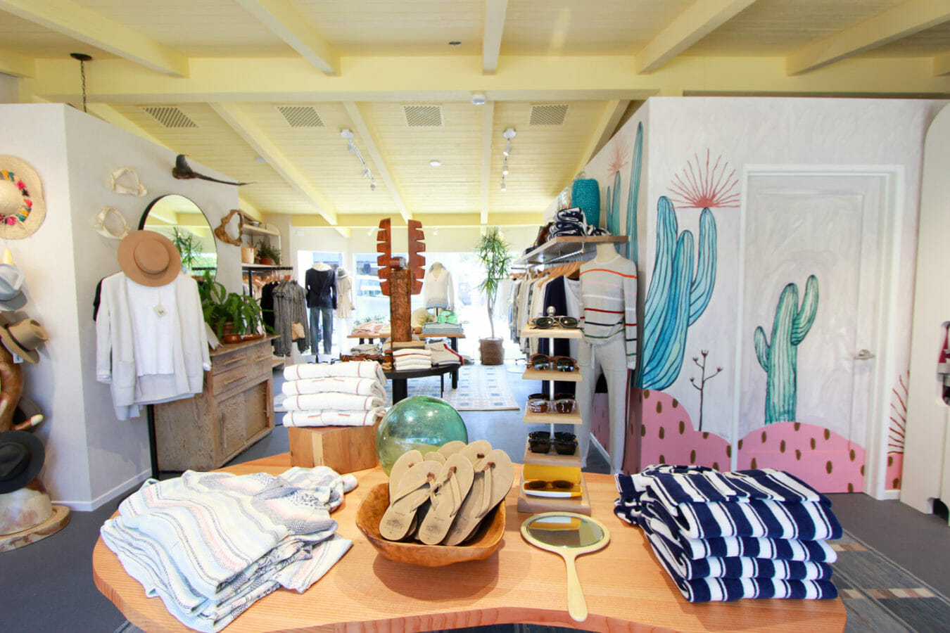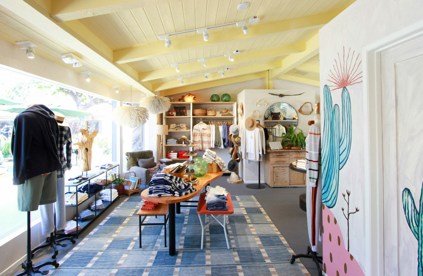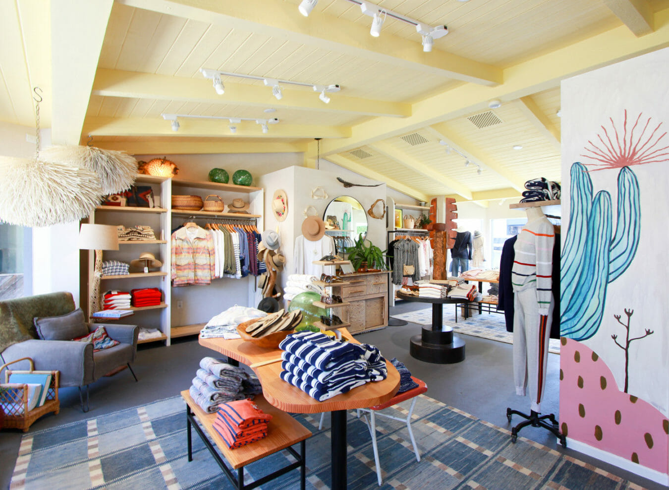 After debuting at Malibu Country Mart in 2016, laid-back label Faherty has upgraded its digs with an expanded women's department and a new kids section. The New York-based lifestyle brand also tapped artist and sculptor Abel Macias to create a cool cactus mural in the space.