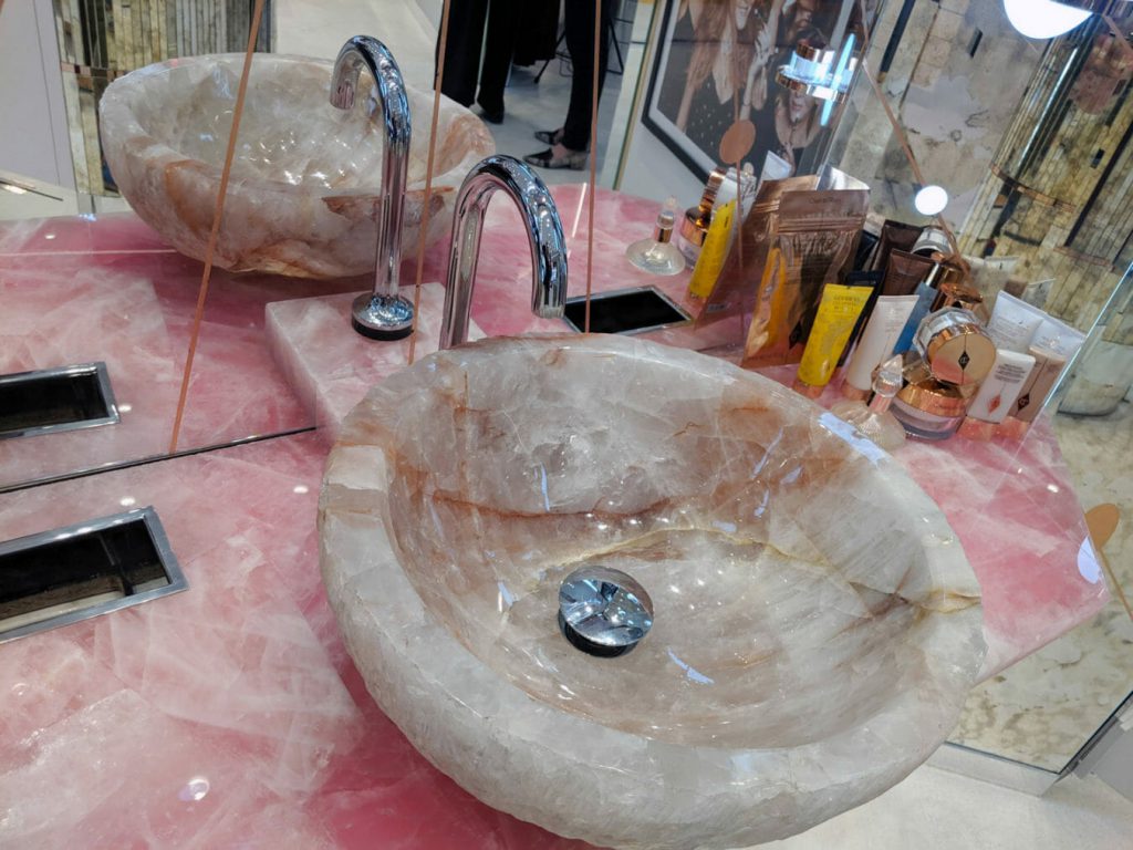 You can also play with skincare products — including dry sheet masks, Goddess Ritual cleansing sets, online exclusives like the Multi Miracle Glow, and more — at the Fountain of Youth, a.k.a. a decadent sink made of pink quartz inspired by Tanit, the Ibizian goddess of femininity and power (fun fact: Tilbury was raised in Ibiza).