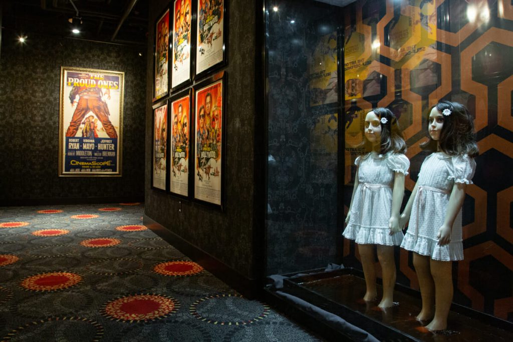 Downstairs, a full bar and kitchen serves up 45 craft brews on tap, Tex-Mex fare, and movie-inspired cocktails, and there are vintage video games to help pass the time, too. Guests can rent out DVDs and Blu-Rays for free from the Video Vortex, which houses a library of 40,000 titles and also stocks pop culture-inspired novelty gifts from Mondo, board games, and more.