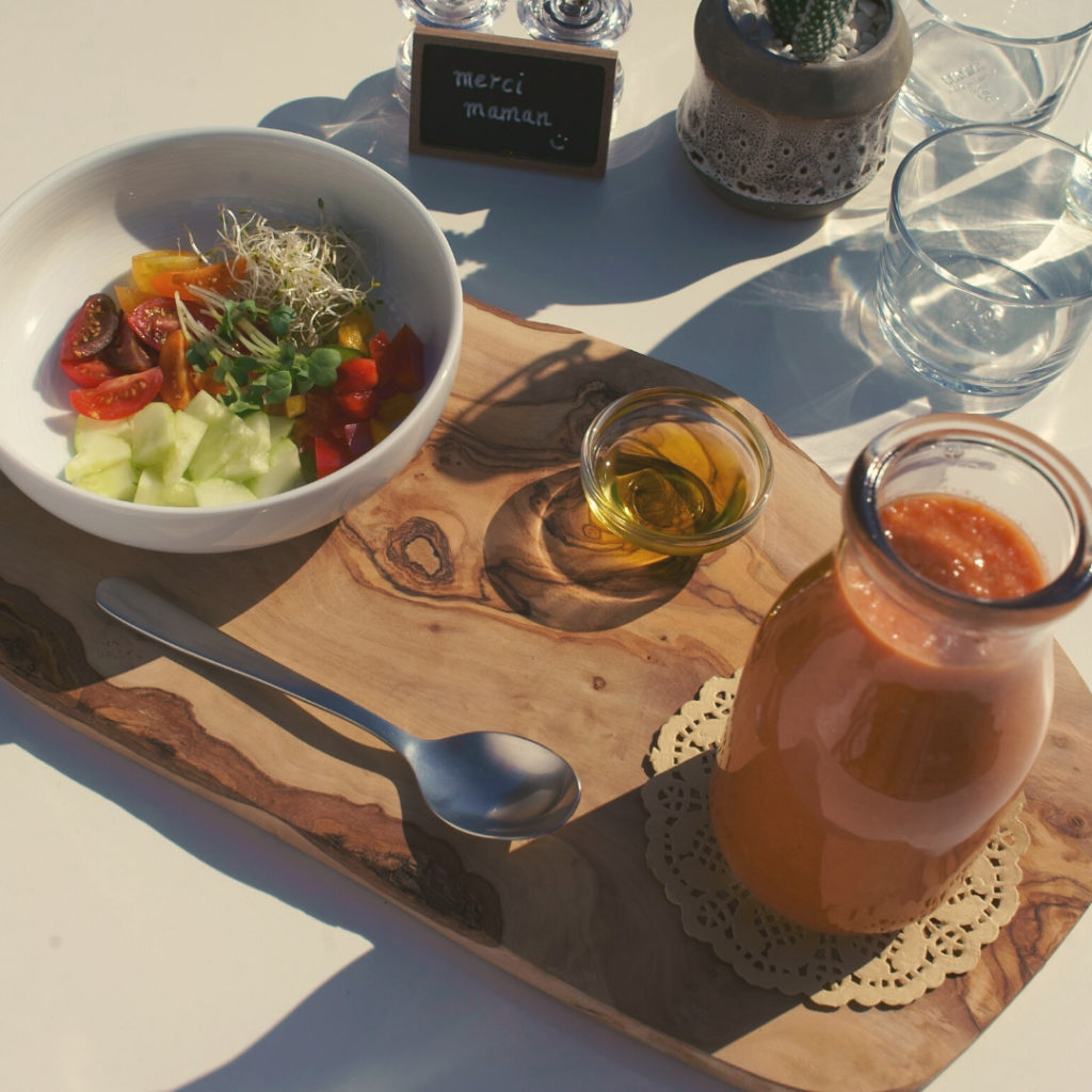 The recipes are heavily inspired by my grandmother who was my motherly figure. She had a vegetable garden in the South of France and I used to spend my childhood summers with her. When I didn't want to eat my vegetables, she would grab ingredients from her garden and make me these incredible soups. Because the soups were chilled and super bold in color, I was really drawn to them. It felt like I was in an ice cream shop or getting frozen yogurt. So I always got all my veggies intake!