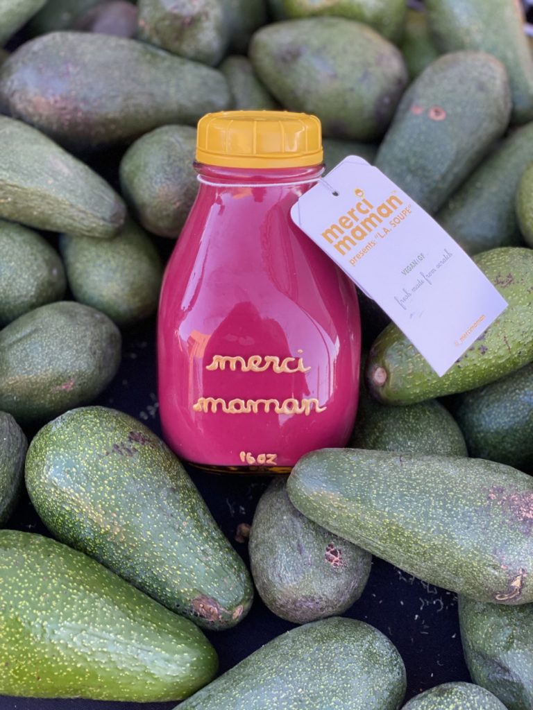 Her brand Merci Maman sells bright-colored concoctions that are made with local organic produce and delivered to Angelenos' doors in glass jars reminiscent of the milkman days.