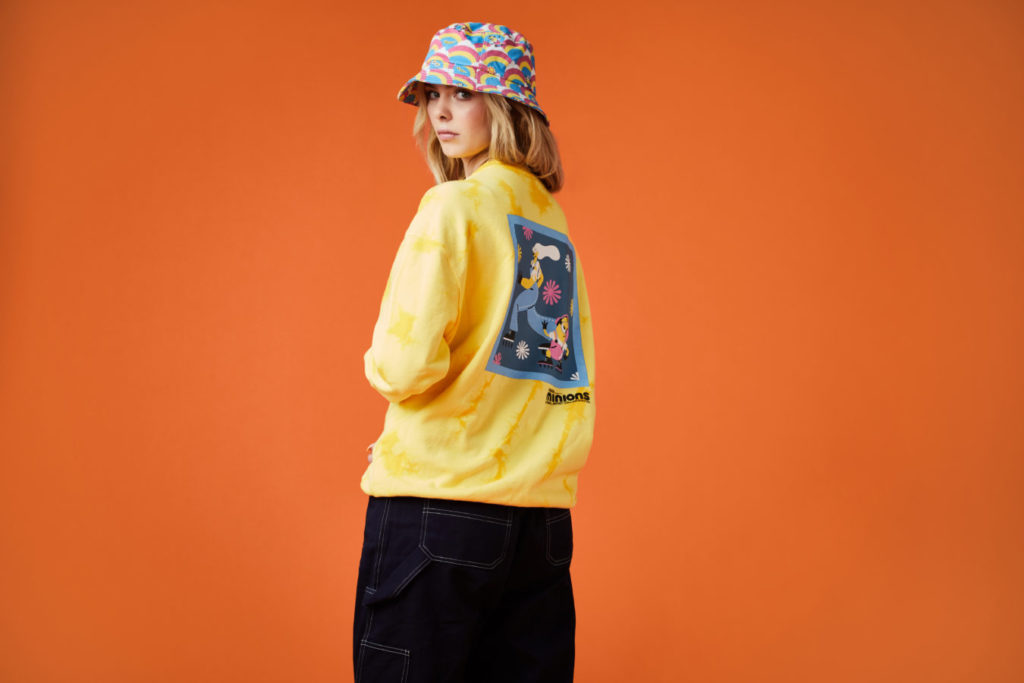 Additionally, UK-based French artist Marylou Faure and Korean illustrator Sambypen worked with Universal on designs inspired by Minions: The Rise of Gru that have been applied to various streetwear styles such as bucket and corduroy hats, crop tank tops, matching sweatshirt and pant sets, tracksuits, tees, and more.