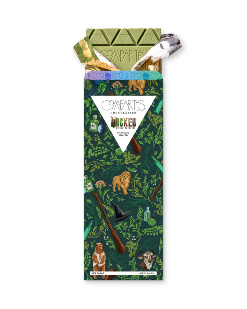 Gourmet chocolatiers Compartés is teaming with Wicked: For Good on a movie-inspired collection of six chocolate bars and an Advent calendar ($11.95 to $119.95) ahead of the Universal Pictures film's Nov. 21 premiere. Ariana Grande's Glinda "weaves the sweetness of strawberry with the floral whisper of lavender and creamy chocolate," while Cynthia Erivo's Elphaba "layers crisp green apple with golden caramel, wrapped in creamy chocolate for a spellbinding flavor."