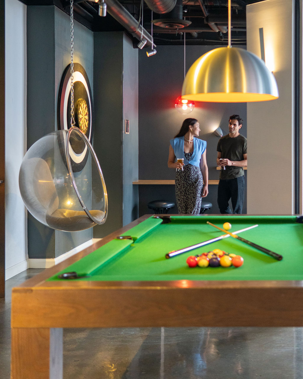 Heading up the elevator, it's hard to believe this tucked-away oasis houses 315 guestrooms, but walking down the hallways proves that great spaces can appear in the most unexpected places. Our guestroom featured plush bedding, ample mirrors, and artwork inspired by the coast, from palm trees to the iconic Pacific Park Ferris wheel. Thoughtful design touches blend comfort and relaxation with a celebration of the city, while private balconies offer views of the ocean, mountains or city skyline. Beyond the rooms, the hotel's on-site offerings make exploring the venue worthwhile. The Sandbox is a clubhouse-style space, equipped with a pull table, darts, shuffleboard, games, workstations, a television and a bar, making it ideal for both corporate events and after-work gatherings.